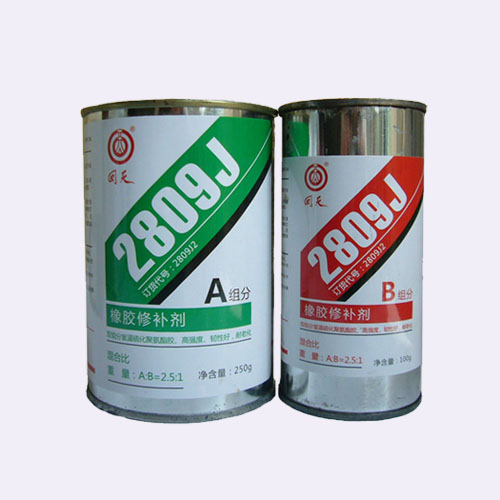 3、按照質量比=2.5:1的比例在容器中混合使用均勻。倒入破損的待修補處至滿橡膠工作面,刮平即可。修補處周圍2~3cm處也應倒膠液。